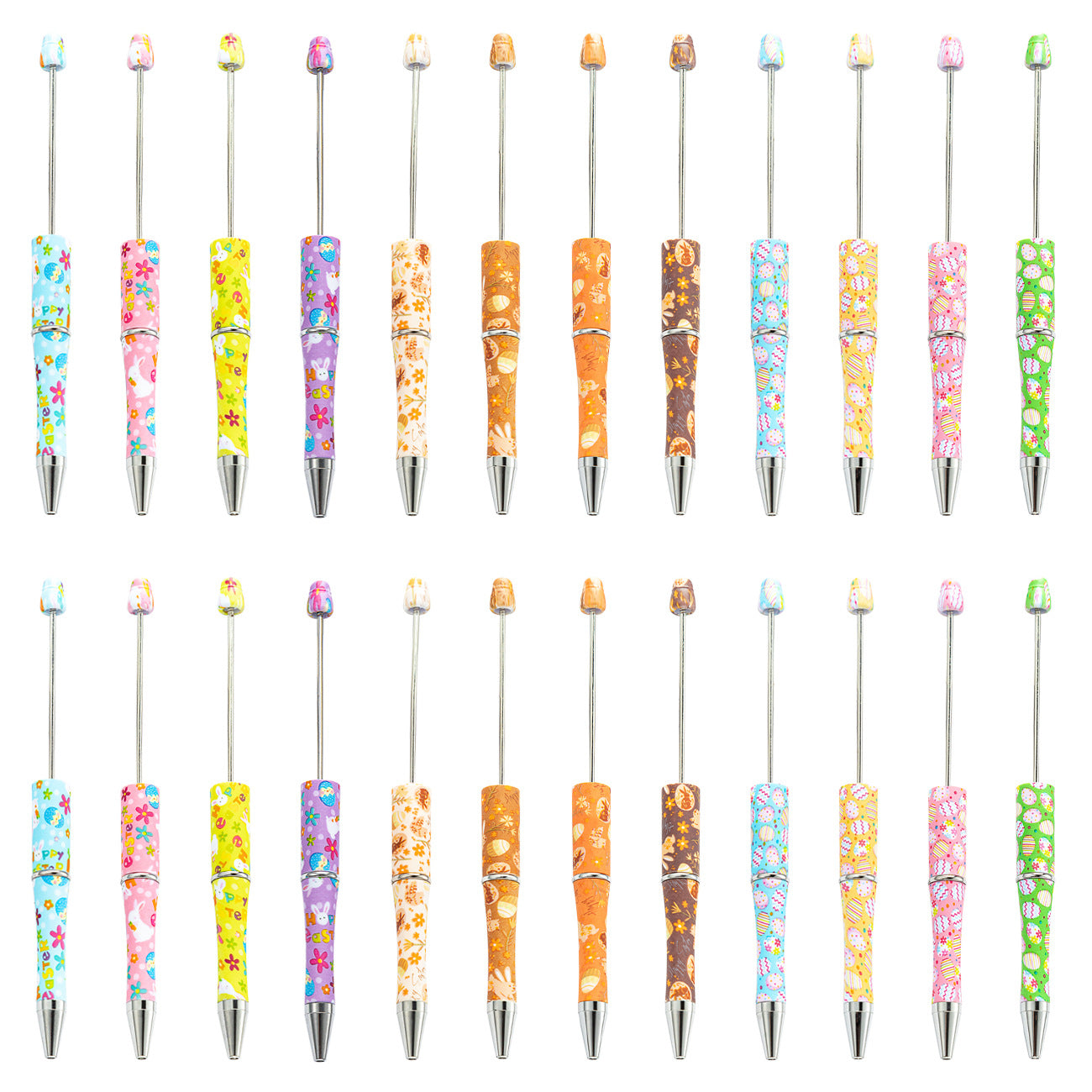 Beaded pen wholesale diy creative plastic beaded ball pen UV plating beaded three color gradual beaded pen
